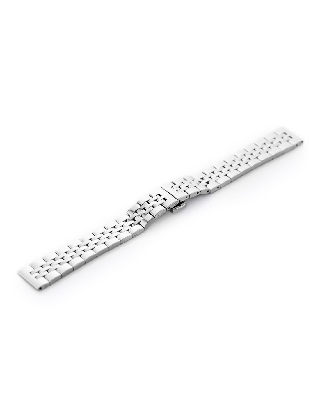 Stalowa bransoletka z zapięciem motylkowym do zegarka wysokiej jakości w kolorze srebrnym.