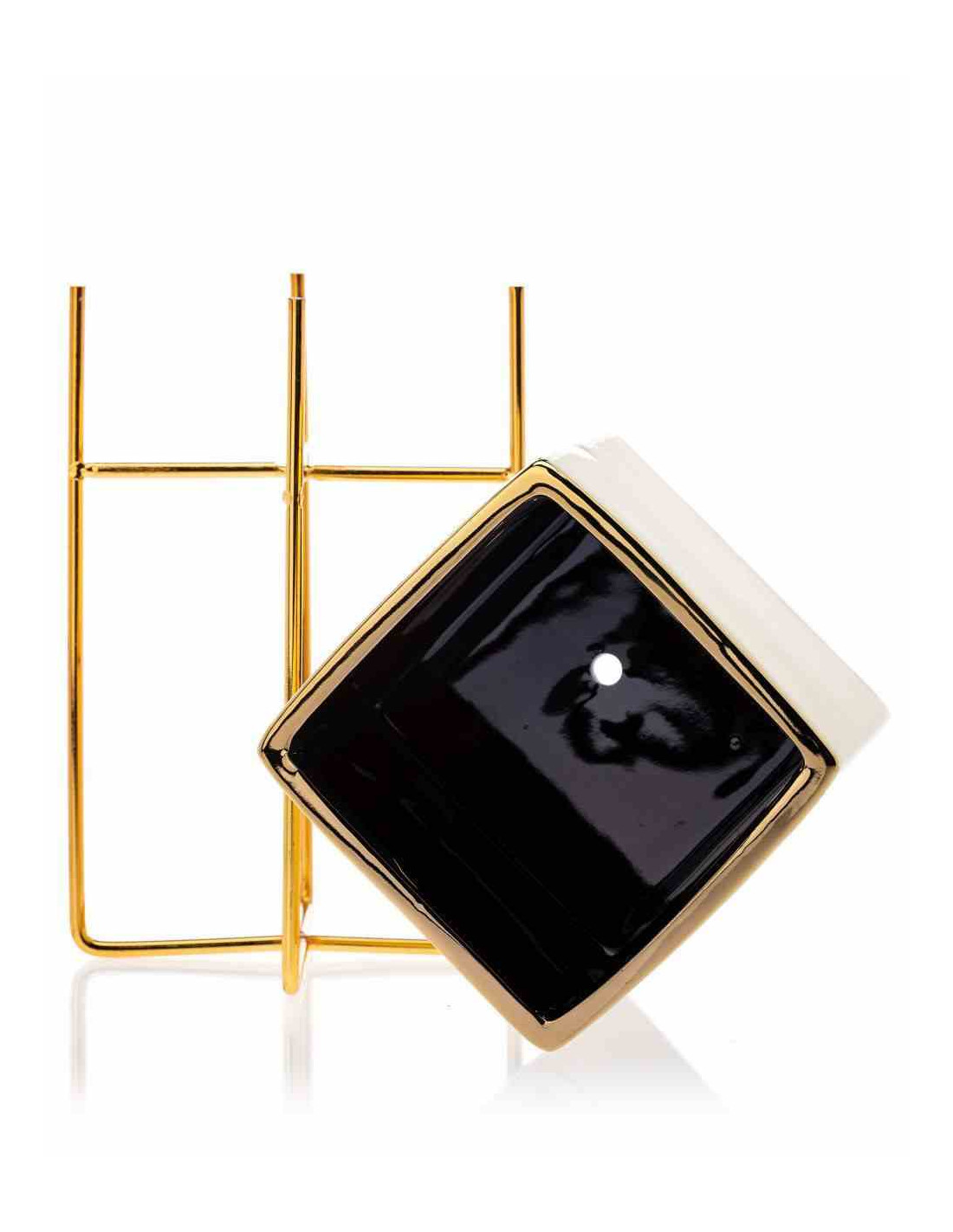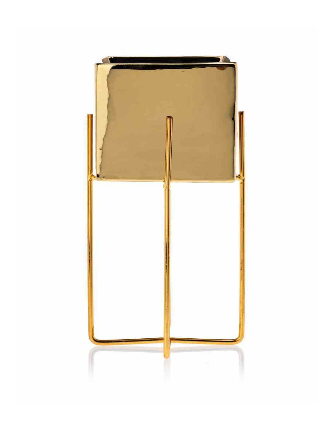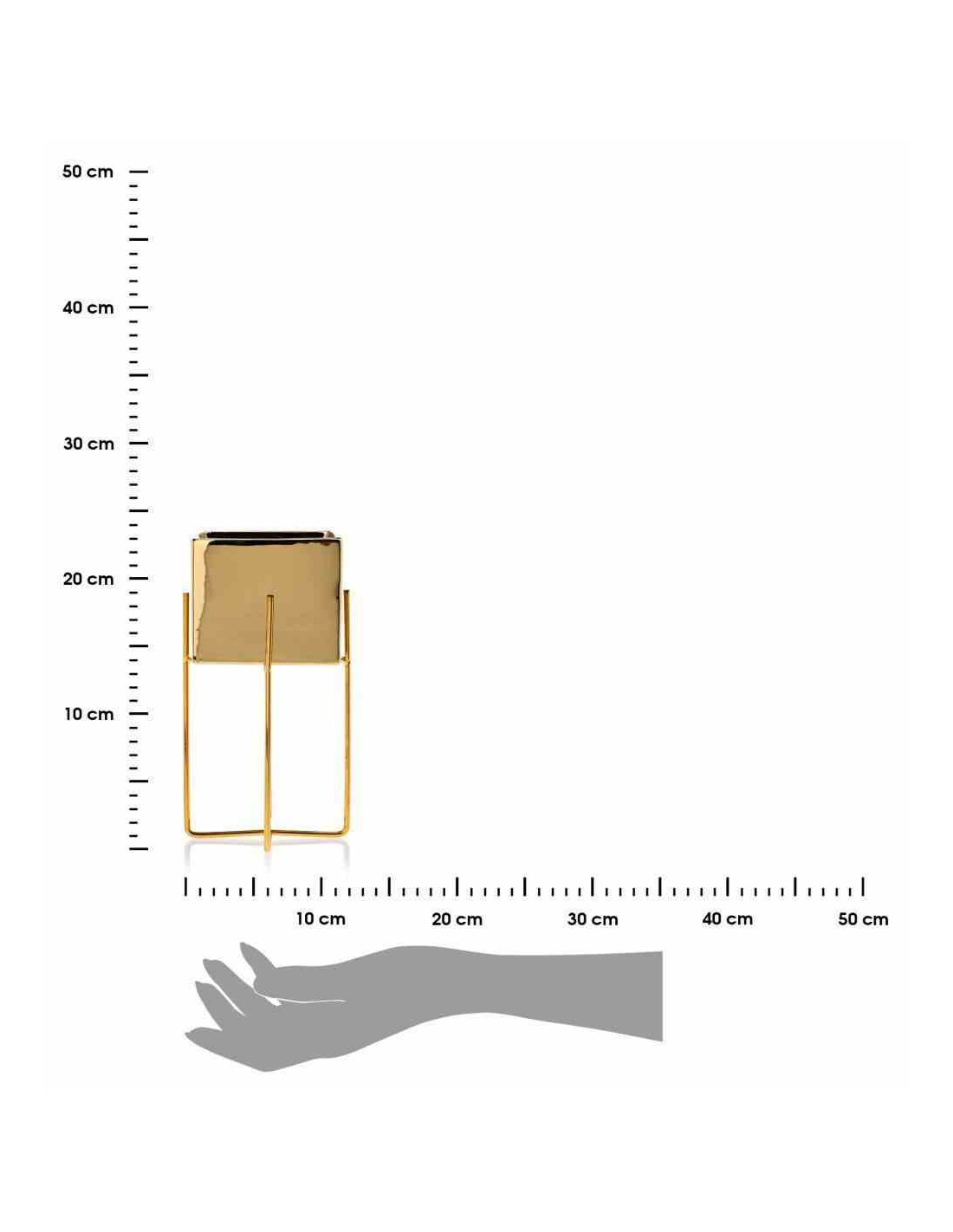 Doniczka Mizu Gold 23 cm Stelaż wykonany z metalu, osłonka wykonana z ceramiki. Wymiary: 12x12x23 cm.