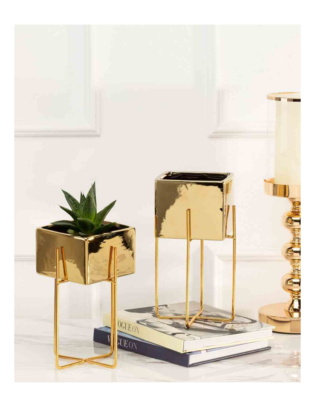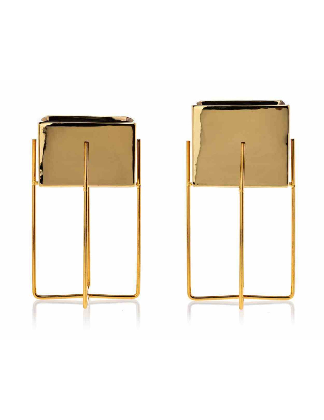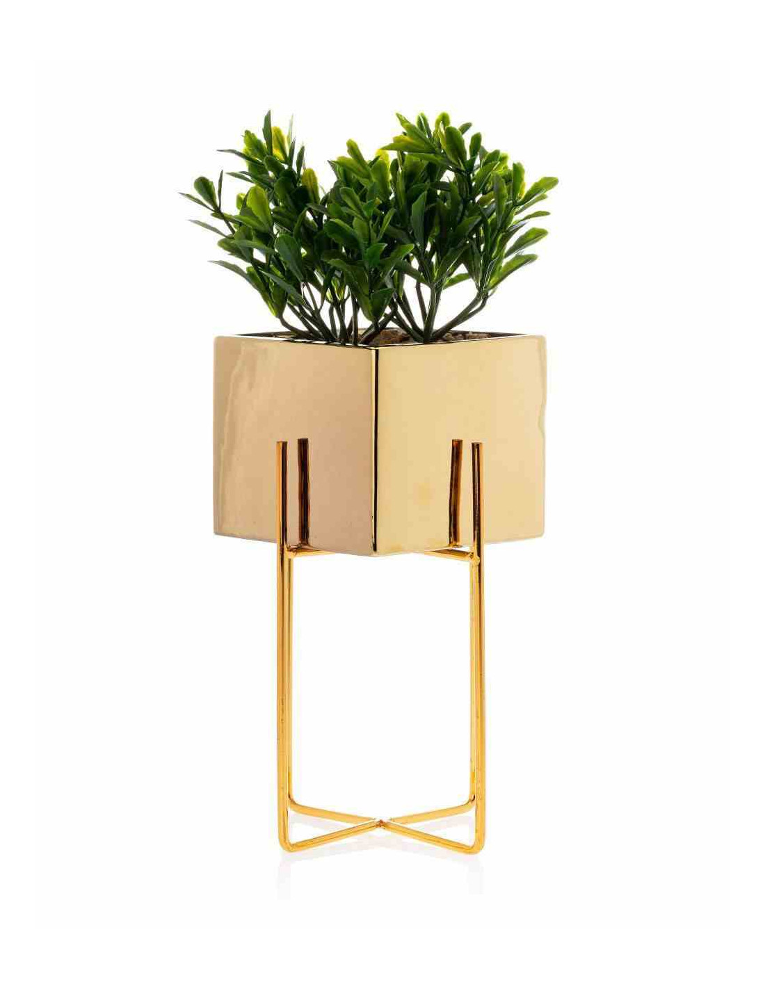 Doniczka Mizu Gold 23 cm Stelaż wykonany z metalu, osłonka wykonana z ceramiki. Wymiary: 12x12x23 cm.