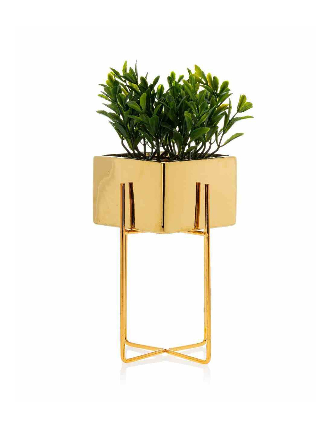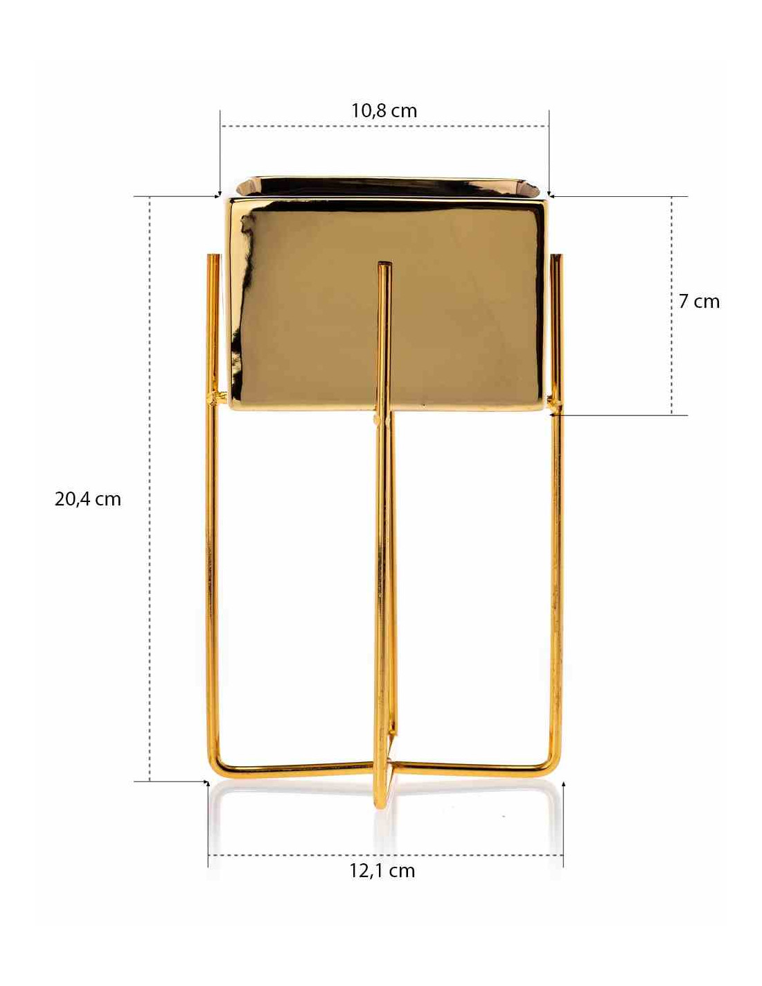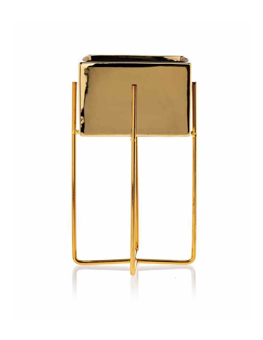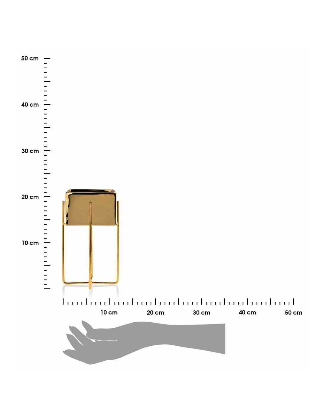 Doniczka Mizu Gold 21 cm Stelaż wykonany z metalu, osłonka wykonana z ceramiki. Wymiary: 12x12x21 cm.