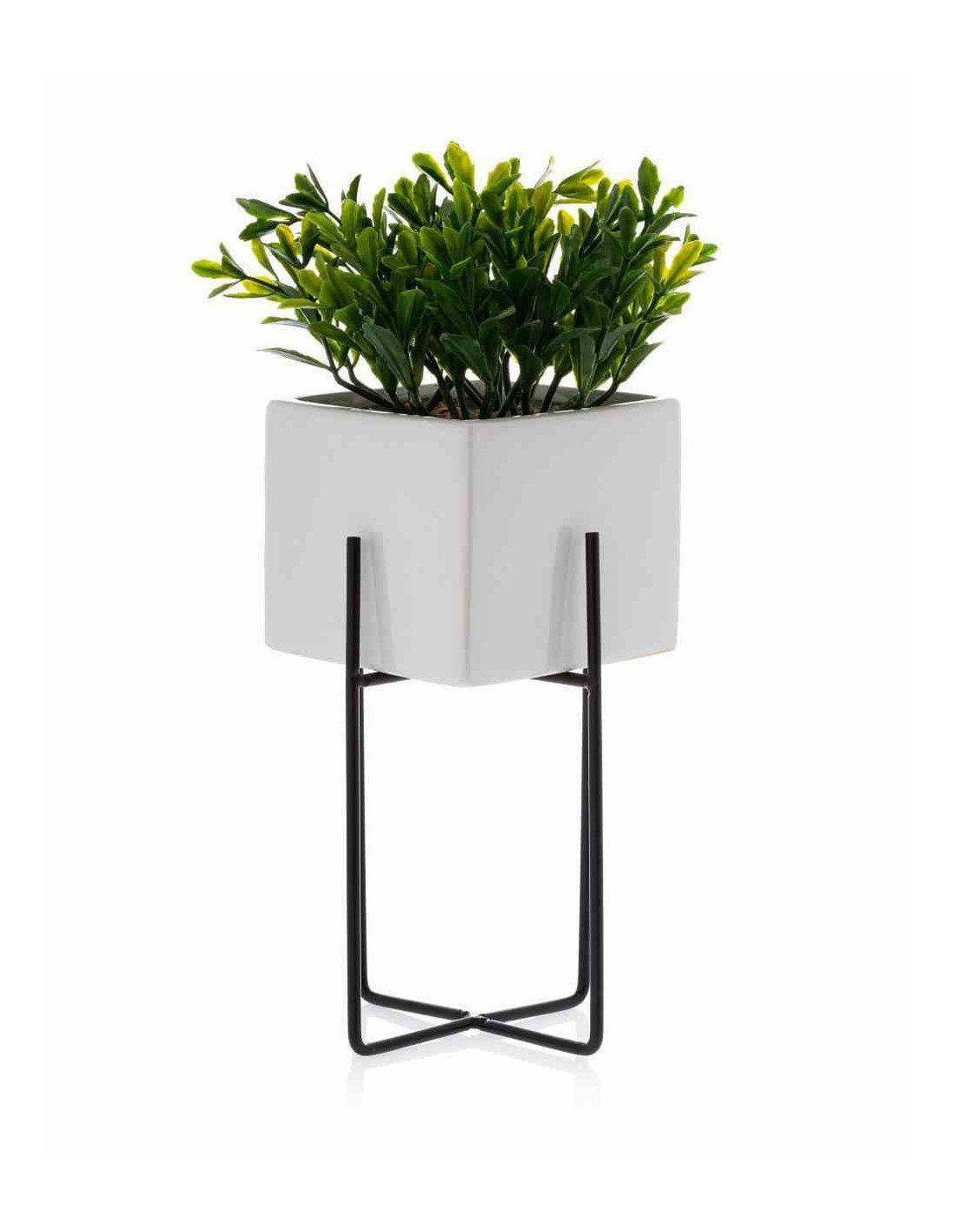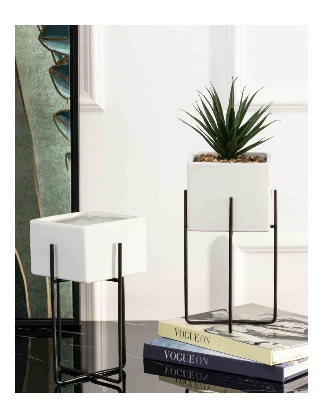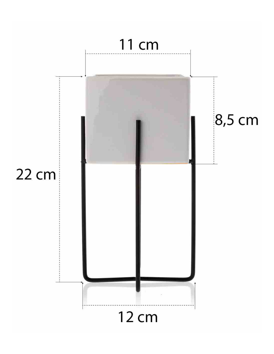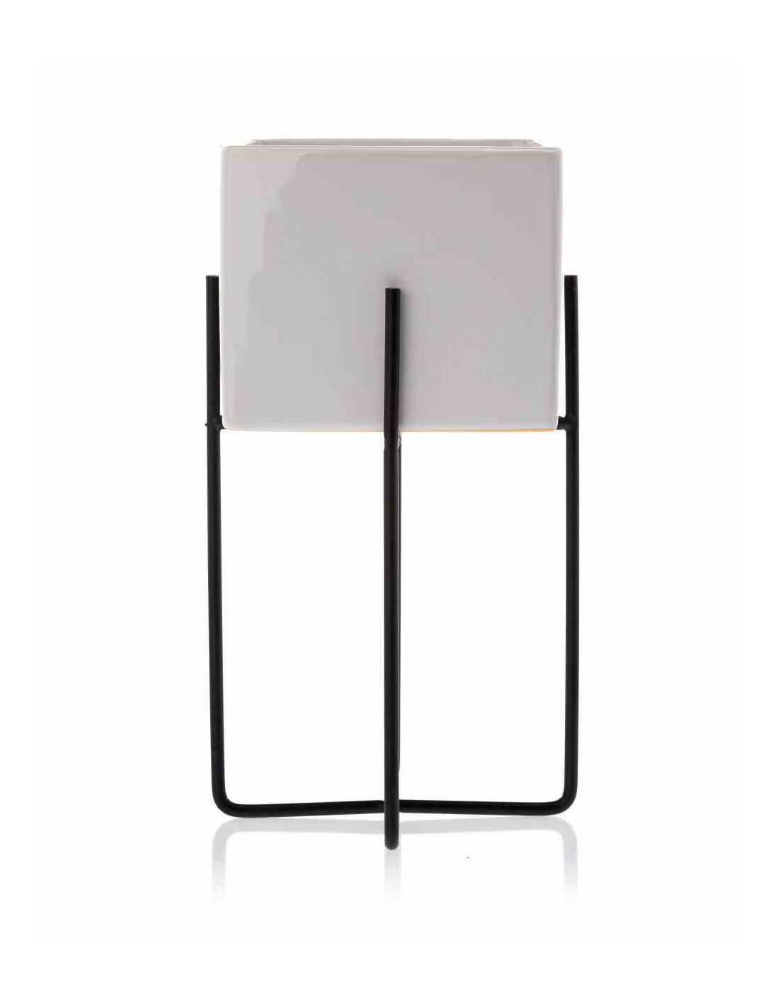Doniczka Mizu White Black 23 cm Stelaż wykonany z metalu, osłonka wykonana z ceramiki. Wymiary: 12x12x23 cm.