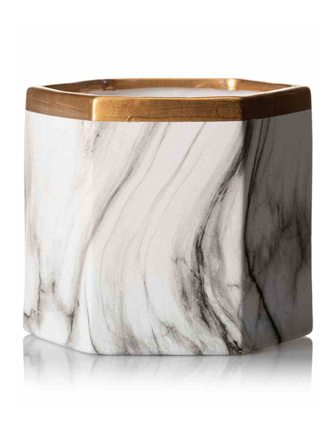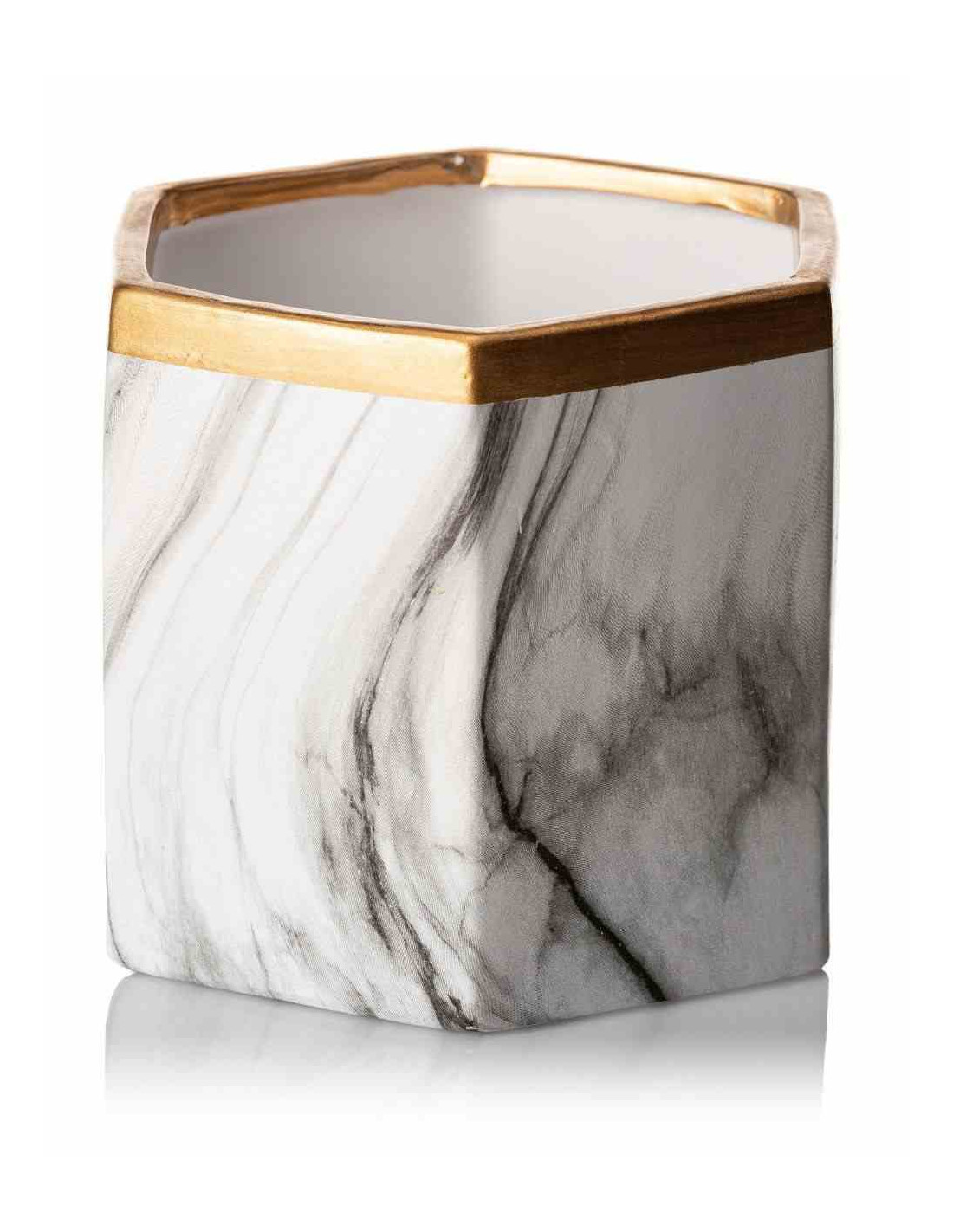 Doniczka Sona Marbling 14,5 cm Wykonana z ceramiki w kolorze białego marmuru ze złotym wykończeniem o średnicy 17 cm