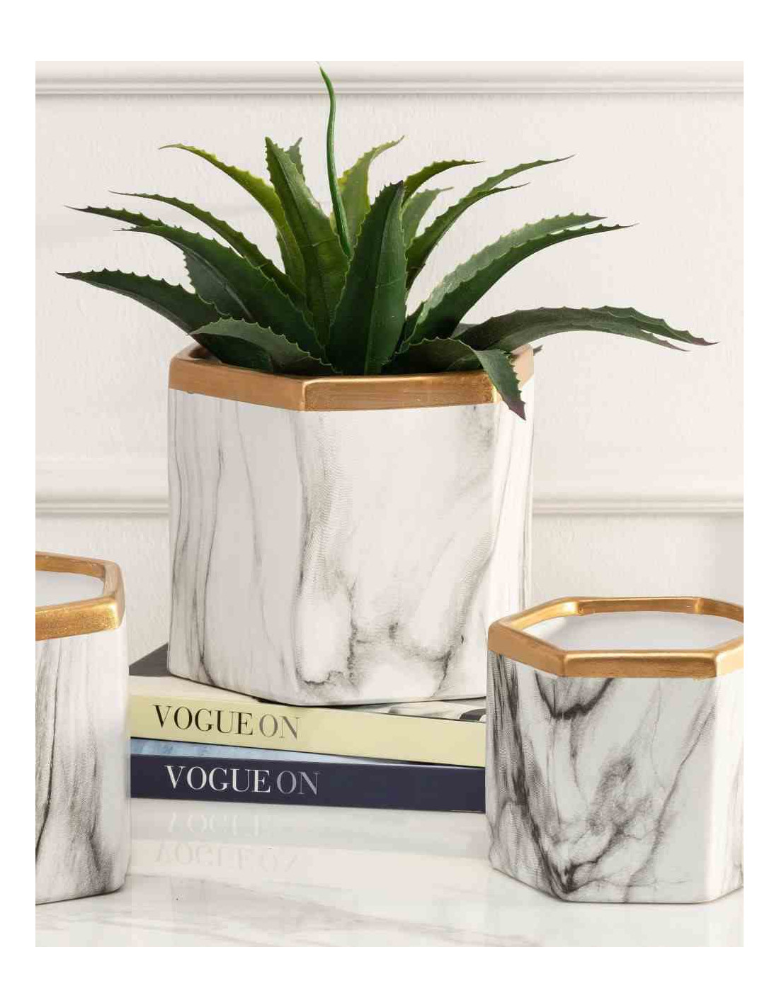 HowHomelyUwielbiasz gustowne dodatki tak samo mocno jak rośliny doniczkowe? Nowoczesna doniczka w kolorze białego marmuru ze złotym, ręcznie malowanym wykończeniem to idealny sposób na dekoracje Twojego mieszkania. Wykonana z ceramiki gwarantuje wytrzymałość. Mały gabaryt oraz stylowy wygląd perfekcyjnie wpasuje się we wnętrze z elementami glamour loft, oraz modern. Ceramiczna doniczka to świetny pomysł na odświeżenie Twojego domowego zacisza.