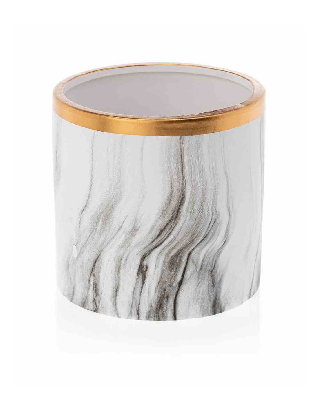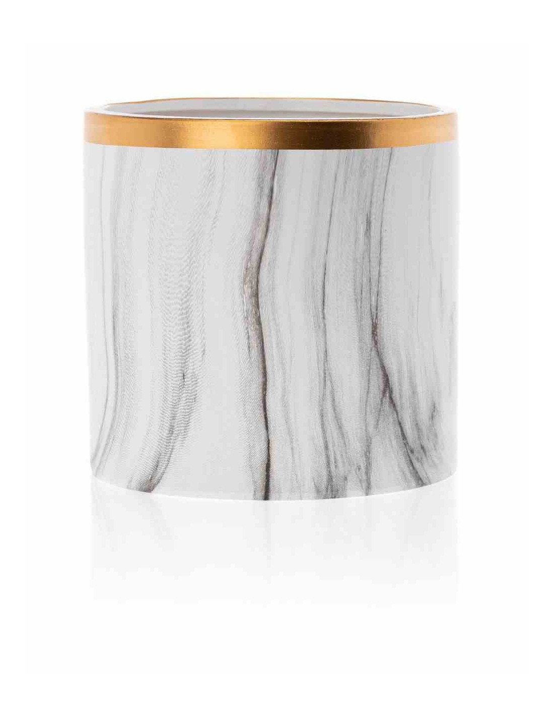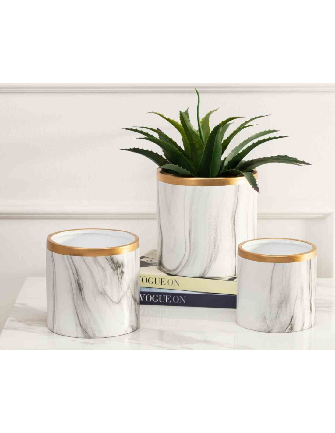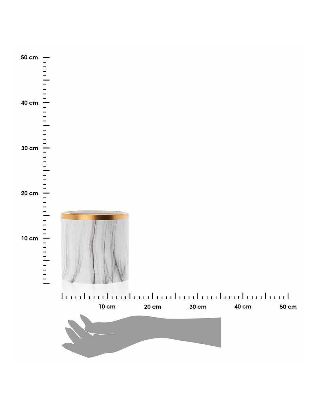 Doniczka Sona Marbling 15 cm Wykonana z ceramiki w kolorze białego marmuru ze złotym wykończeniem o średnicy 15 cm