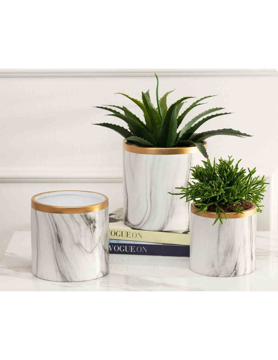 HowHomelyUwielbiasz gustowne dodatki tak samo mocno jak rośliny doniczkowe? Nowoczesna doniczka w kolorze białego marmuru ze złotym, ręcznie malowanym wykończeniem to idealny sposób na dekoracje Twojego mieszkania. Wykonana z ceramiki gwarantuje wytrzymałość. Mały gabaryt oraz stylowy wygląd perfekcyjnie wpasuje się we wnętrze z elementami glamour loft, oraz modern. Ceramiczna doniczka to świetny pomysł na odświeżenie Twojego domowego zacisza.