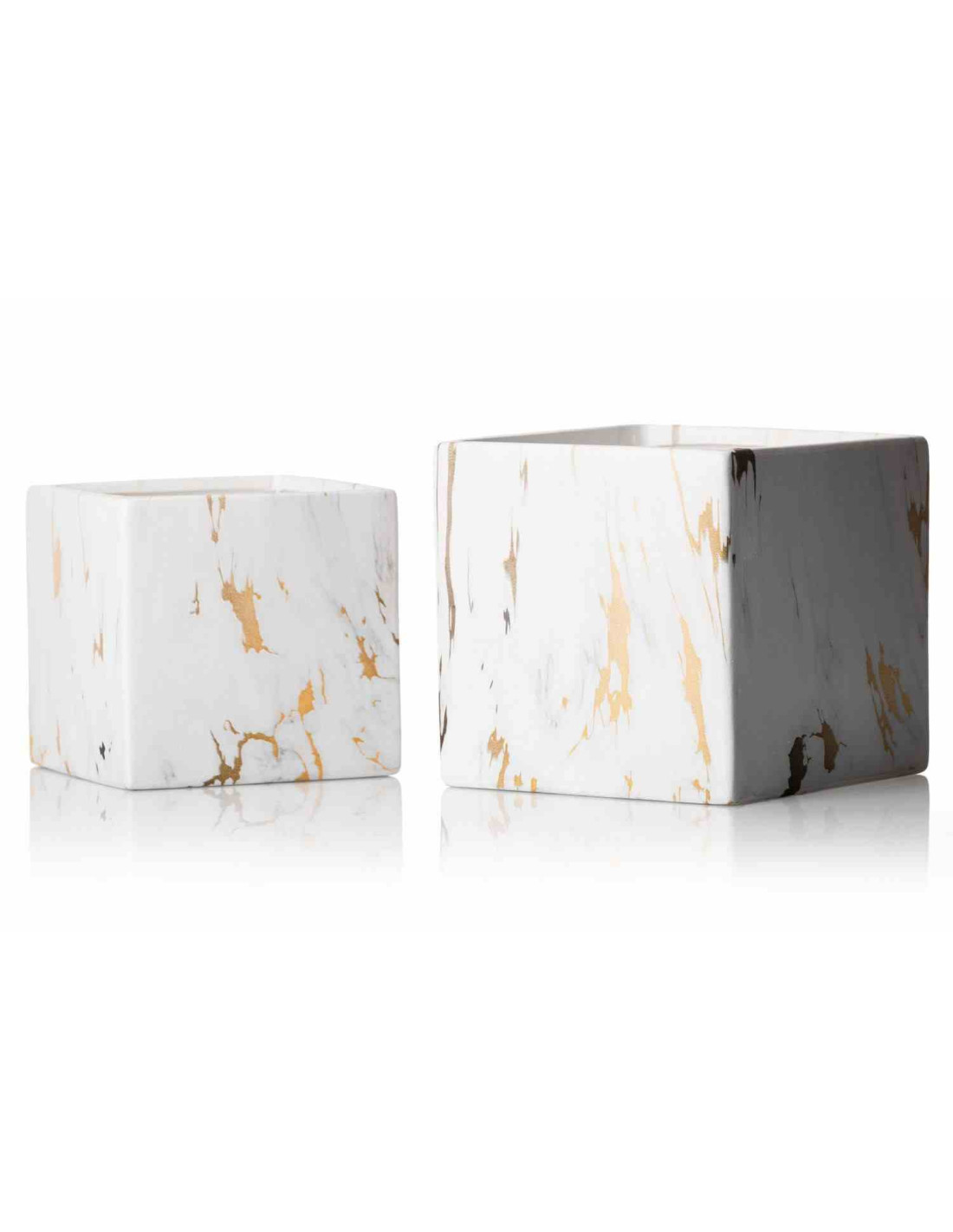 Doniczka Marbela 11 cm Wykonana z ceramiki w kolorze białego marmuru. Wymiary: 11x11x11cm.