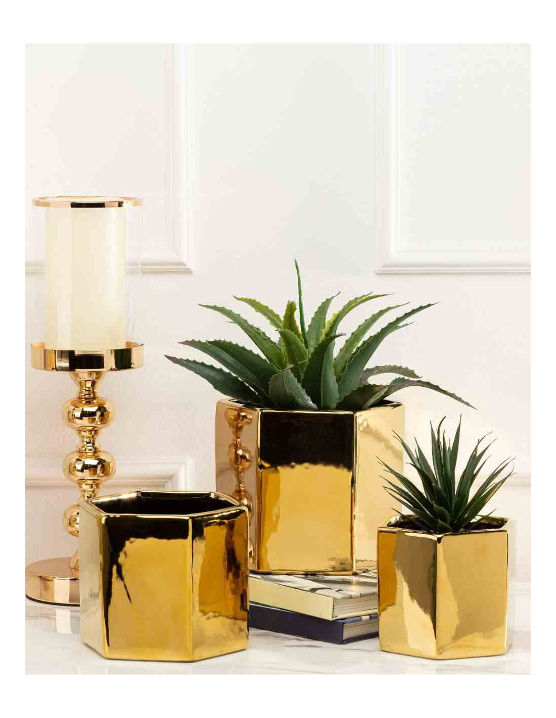 Doniczka Mia Gold 12 cm Wykonana z ceramiki w kolorze złotym. Wymiary: 14x12x12 cm.